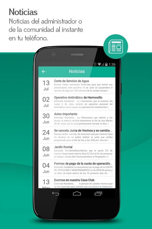 - Consultar adeudos de cuotas de administración y mantenimiento.