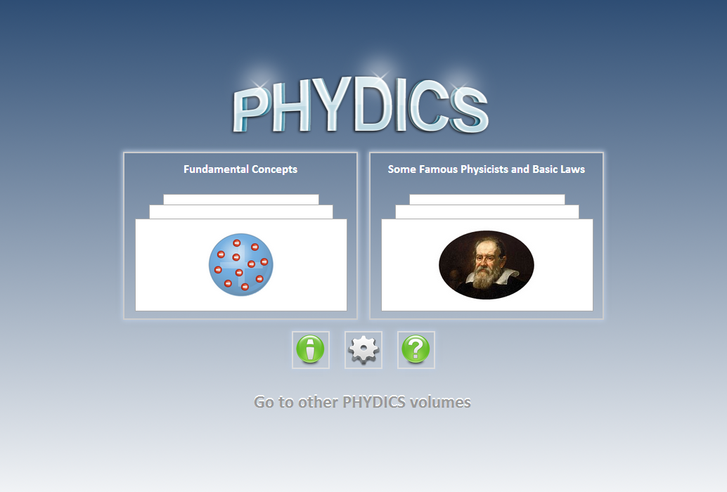 Basic Concepts volume of PHYDICS contains two main topics. The first topic is fundamental concepts of physics. The dictionary presents 4 fundamental physics concepts in an enjoyful and interactive way. The second topic of the dictionary contains contents about some famous physicists and basic laws of physics.