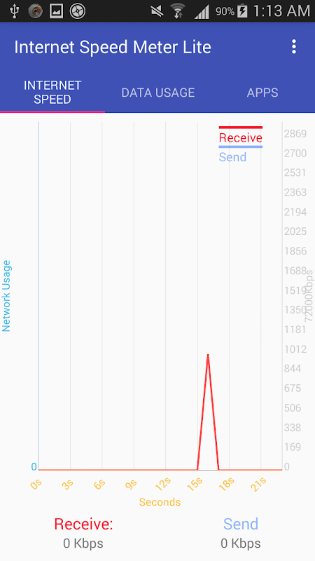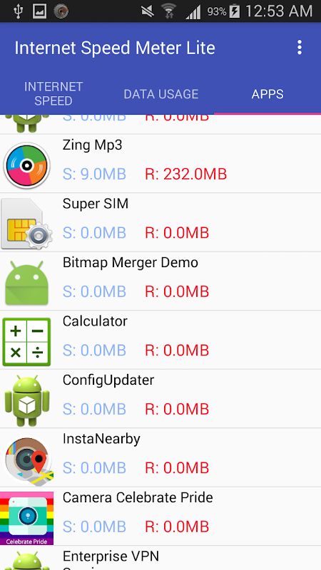 Internet Speed Meter displays your internet speed in status bar and shows the amount of data used in notification pane.