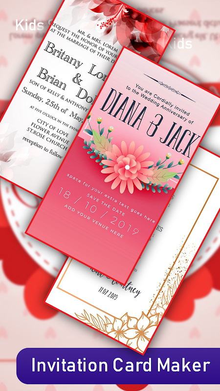 Yes, you can make your own Wedding Anniversary card on your mobile with “Wedding card maker”, which is having a huge collection of printable cards and laser cut designs. A Wedding card is an invitation asking the recipients to attend the wedding. With this Wedding card maker, you can create a wedding card instantly. Everything needs to be perfect in wedding. Starting with the selection of cards, and information about the wedding such as bride and bride groom names, date and place of wedding everything should be perfect. With this application you can create wedding card easily.