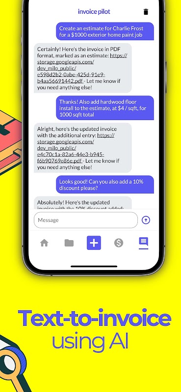 - Faturamento com tecnologia de IA: basta enviar uma mensagem de texto e deixar nossa IA fazer o trabalho pesado para você! Criar e editar faturas nunca foi tão fácil ou divertido com a nossa integração de IA!