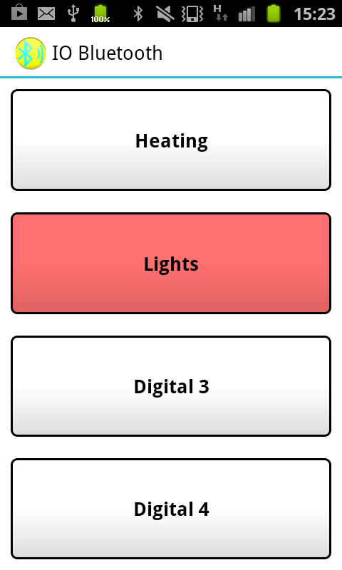IO Bluetooth permite o controle do módulo de relé Devantech BT004 Bluetooth.