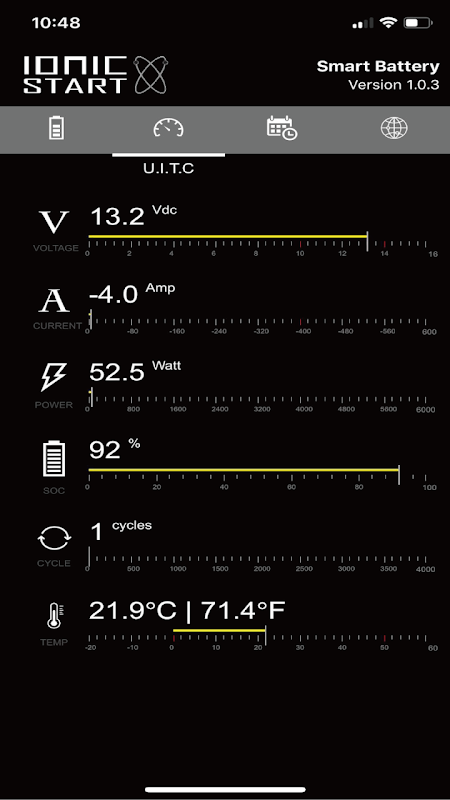 As baterias IONIC Red oferecem baterias de partida e partida de emergência inteligentes, que permitem o monitoramento da bateria e a ativação remota da bateria do APP com base na tecnologia Bluetooth. Este aplicativo é usado com baterias "vermelhas" iônicas. Alguns dos recursos são status instantâneo da bateria para monitorar o status junto com a condição da bateria.