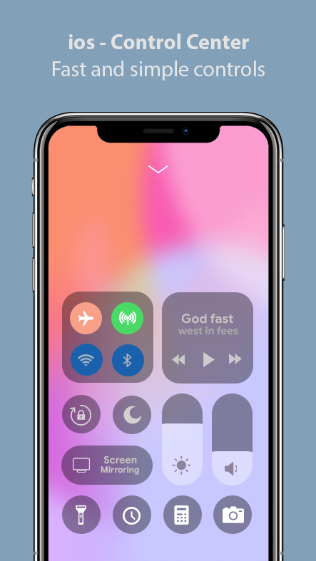 Control center ios com pacote de ícones de suporte e animação suave. O Control Center iOS 14 oferece acesso instantâneo à Câmera, Relógio, Gravação da tela, Captura de tela e mais configurações como iOS X, iOS XS.