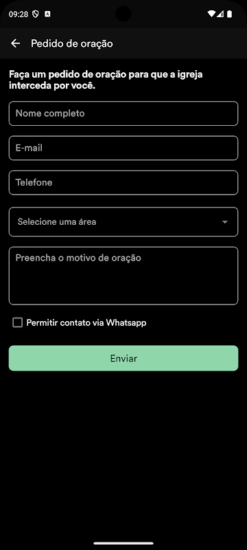 🙏 Faça pedidos de oração através dos intercessores para você e seus familiares.