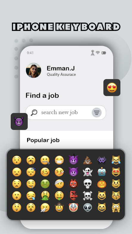 iOS Keyboard with iOS emoji is a new keyboard with fun iemoji. iOS emojis keyboard,GIF keyboard free is a free emoji keyboard app that makes typing more fun, accurate and fast.