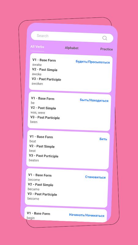 Irregular Verbs é um aplicativo educacional desenvolvido para ajudar os usuários a dominar as formas verbais em inglês sem esforço. O aplicativo fornece uma lista abrangente de verbos irregulares com sua forma básica, passado simples e particípio passado. Os usuários podem praticar o preenchimento das formas verbais corretas com feedback instantâneo, tornando o aprendizado mais interativo e eficaz. Com sua interface amigável e categorização estruturada, esta ferramenta é perfeita para estudantes, profissionais e entusiastas de idiomas que desejam aprimorar suas habilidades em inglês. Esteja você se preparando para exames ou simplesmente expandindo seu vocabulário, Verbos Irregulares oferece uma maneira conveniente e envolvente de aprender.