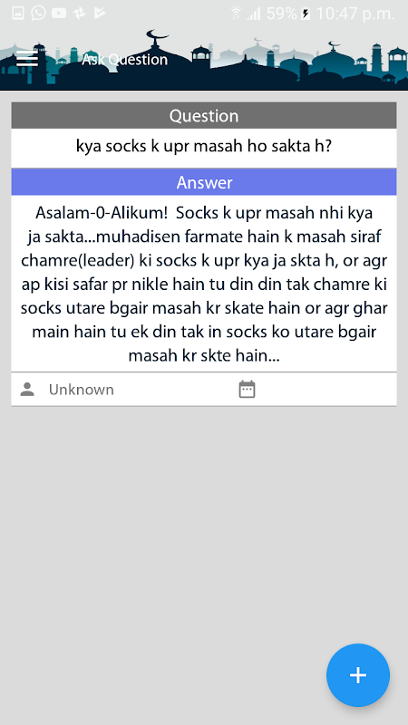 ♢ Another important feature on our app is 'Ask Question ' which allows our users to ask any Islamic question. Our admin team will then take the question to an authentic Islamic scholar who will provide an answer to your query. The answer will be delivered to you the very next day or as soon as possible.