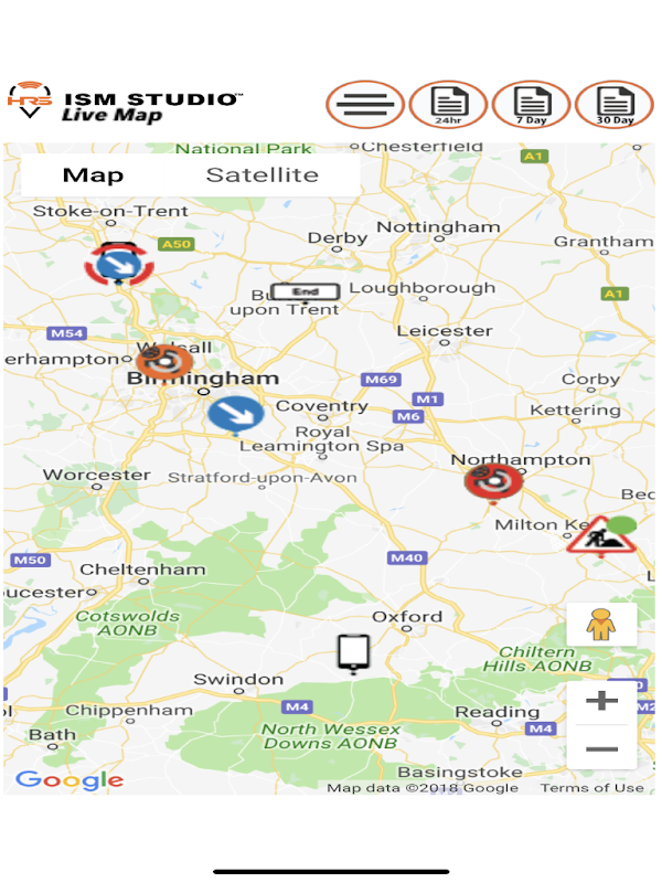 ISM-Studio is a work site management system, which provides a live map view of roadwork locations and traffic management equipment.