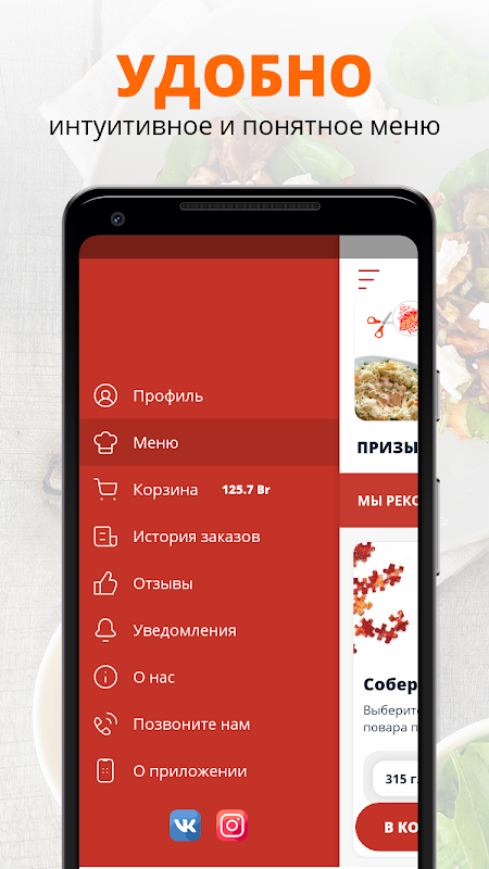Entrega rápida de comida saborosa e quente em Vitebsk