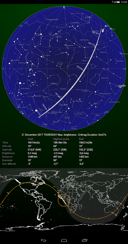 Depois de escolher a direita passar você vai ver detalhes e informações necessárias com um mapa do céu visível durante a passagem.