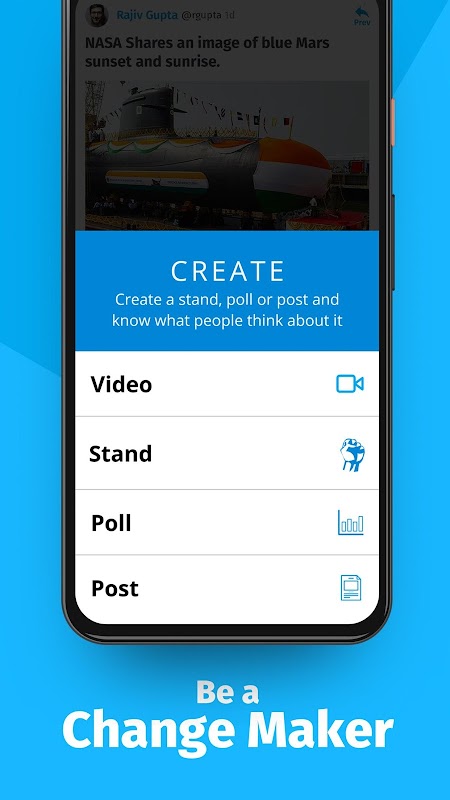 Aqui, eu estou com, é uma verdadeira plataforma indiana que nos dá a oportunidade de expressar nossa posição, expressar nossas emoções e sentimentos. Dá-lhe liberdade para colocar sua perspectiva nas plataformas sociais, trocar opiniões e expressar plenamente.