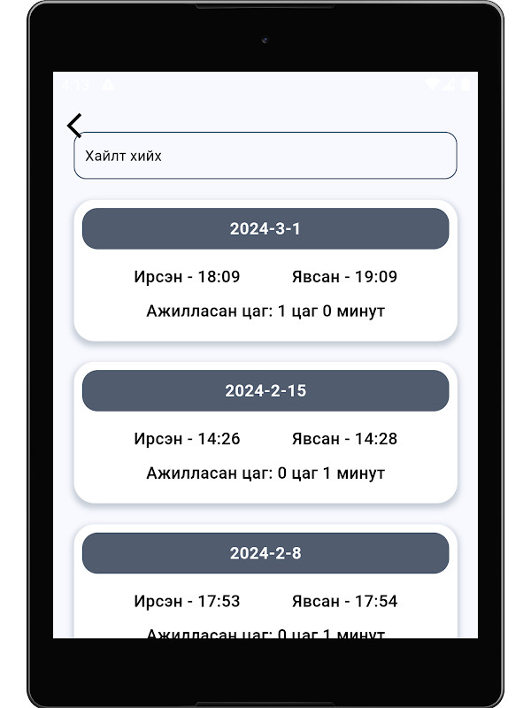 Um aplicativo de telefone para registrar o registro de horário da empresa.