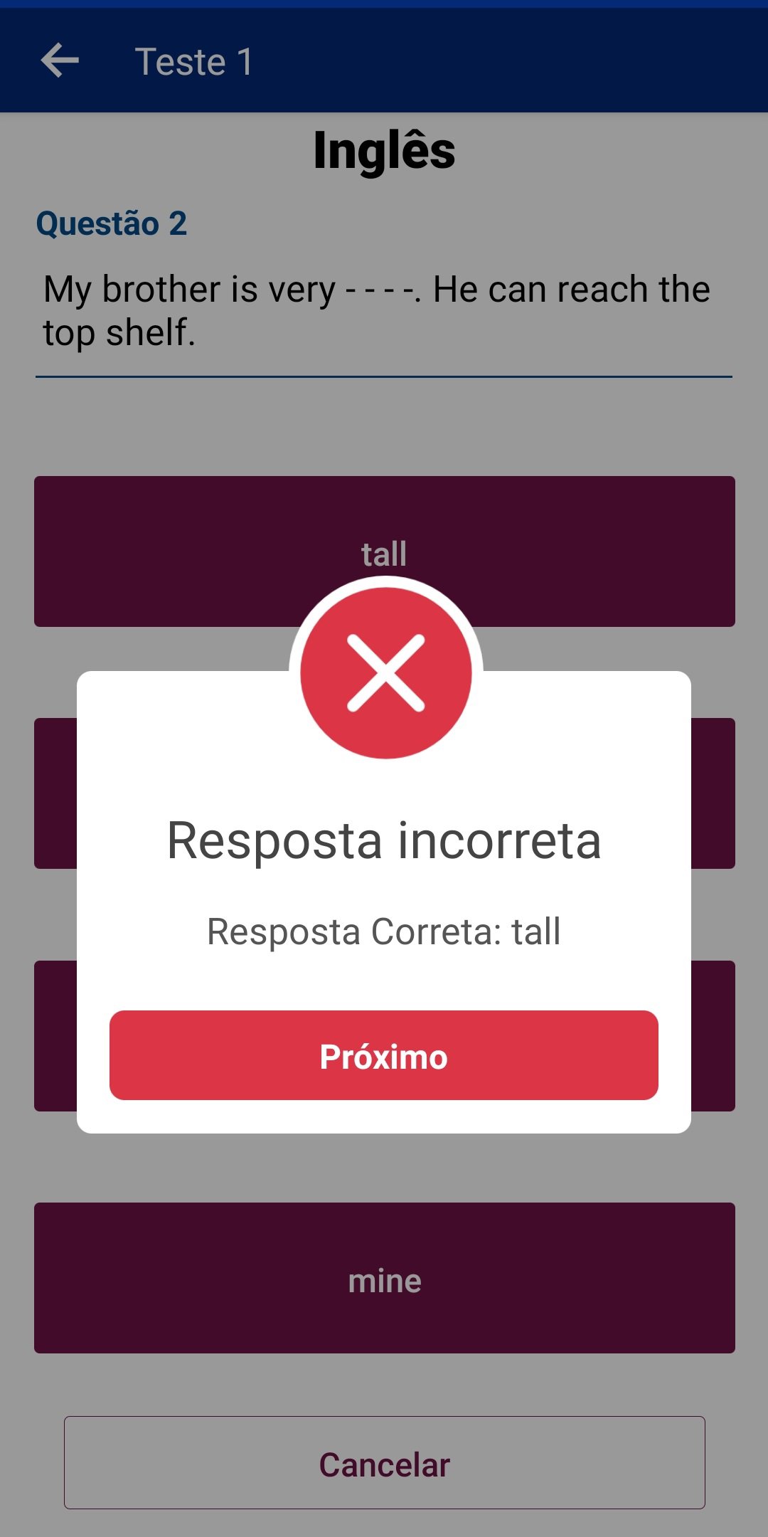 Once your quiz is created you can try to answer it; The app will show you the question and the number of options you chose with different answers, you must choose the answer that you think is the correct one. If the answer is correct, the app will notify you and if it does not show you the correct answer.