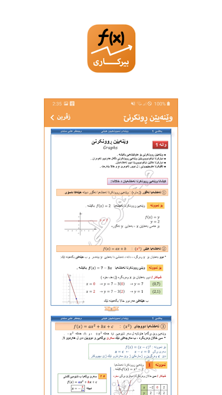 ئەپلیکەیشنا پەرتووکا هاریکار هاریکاریا هەمی قۆتابیان دکەت د بابەتێ بیرکاری یا پۆلا 12 دا ب شێوێ نڤێسین هەروەسا بشێوێ ڤیدیو بۆ هەمی وانەییێن دناڤ دا هاتین دیار کرن.
