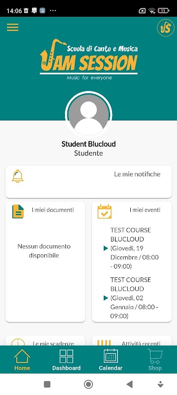 “Jam Session” é a aplicação para gerir os vários aspectos da escola de forma simples e avançada, desde os cursos ao calendário de aulas, desde a assiduidade às compensações, pagamentos aos sócios e aos professores da Escola de Canto Jam Session e música e para a promoção e partilha de eventos escolares.