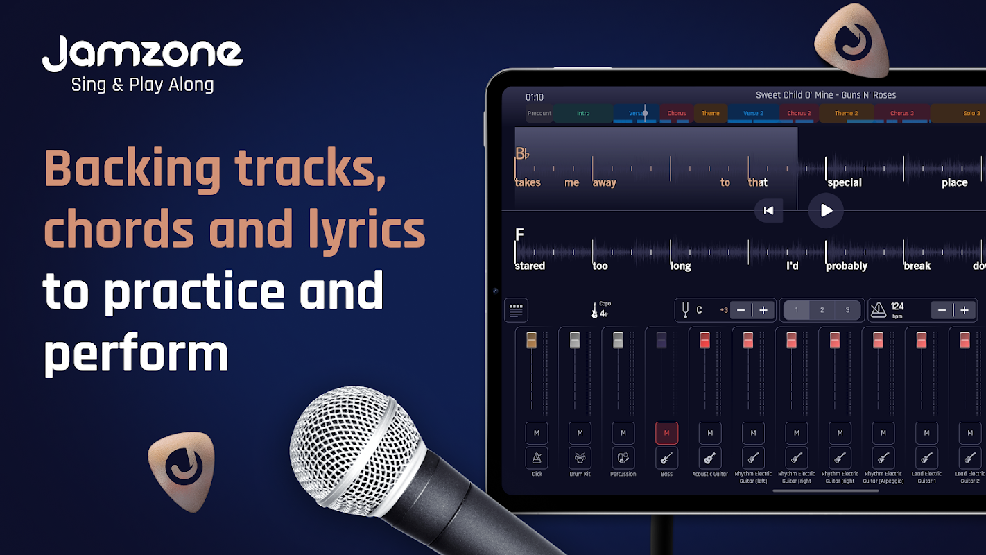 Eleve seus ensaios e apresentações musicais a um novo patamar com o Jamzone, sua banda completa em uma caixa. Acesse milhares de faixas instrumentais com qualidade de estúdio, personalize-as para combinar com seu estilo e toque junto com acordes, diagramas e letras sincronizados para uma experiência verdadeiramente imersiva. Perfeito para músicos, cantores e bandas de todos os níveis que desejam cantar karaokê, solos sobre faixas gratuitas ou ensaiar como profissionais.