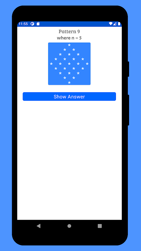 Neste aplicativo cheio de programas de padrões Java, como estrela, número, padrões do alfabeto.