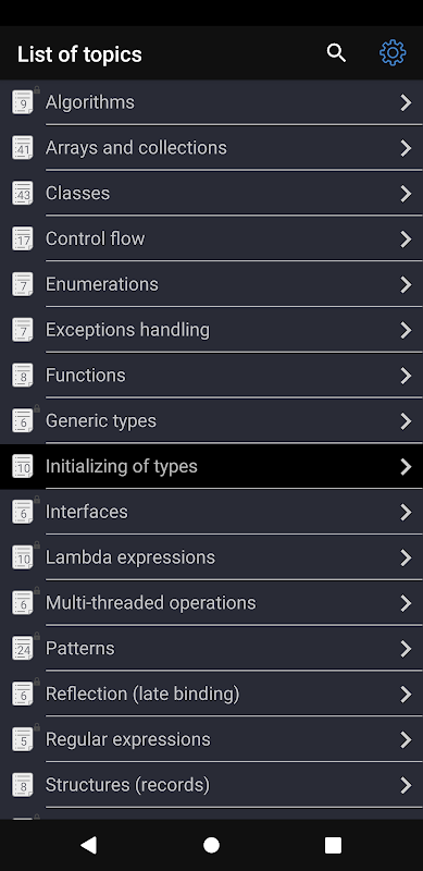 • Os melhores exemplos de códigos de livros e recursos específicos da Internet são selecionados no programa. Encontrar a melhor decisão na Internet pode exigir horas de trabalho. "Receitas" de código prontas para uso e testadas estão incluídas no aplicativo.