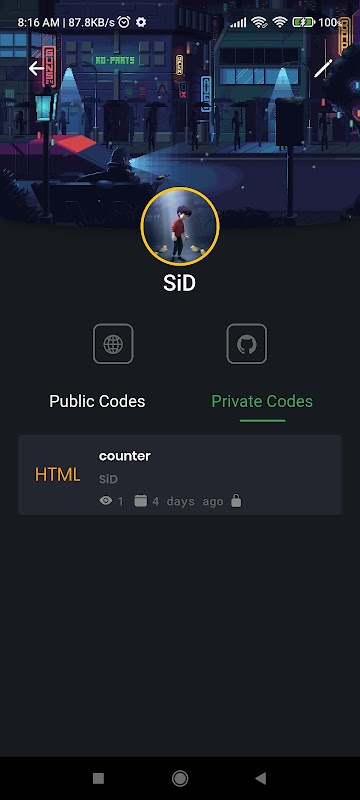 - Carregue seus códigos online como privado ou público se você quiser compartilhar com a comunidade