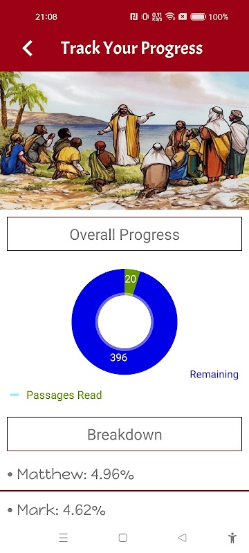 O aplicativo vem com uma Bíblia KJV. É uma boa prática ler o máximo possível da Bíblia.