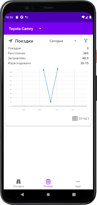 Все поездки отображаются одним списком, а отчеты теперь можно составлять в отдельной вкладке по разным критериям.