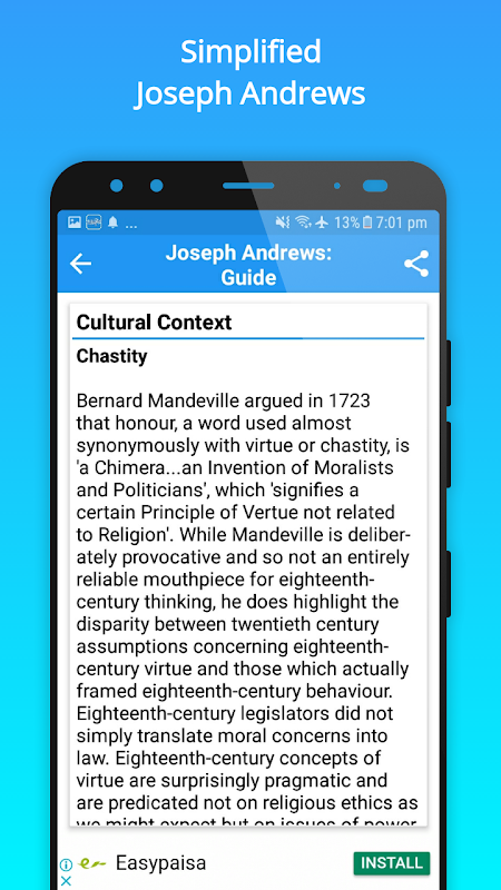 This Guide app works both online and offline, and contains 33 basic topics about one of the famous novels of Henry Fielding, Joseph Andrews.