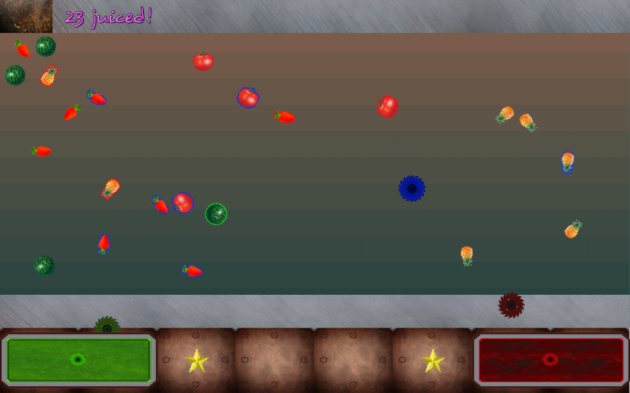 Use the green button for the green blender and the red button for the red blender - all you have to do is juice the fruits shown next to each of them and avoid the others...but they will change suddenly so watch them carefully!