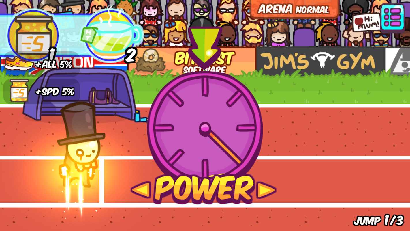 Torne-se o Campeão Mundial de Salto em Distância neste viciante jogo de atletismo. Compita na Arena para ganhar moedas, obter melhorias para melhorar seu salto, praticar para aprimorar suas habilidades e progredir na Carreira, de nível local para mundial, para atingir seu objetivo.