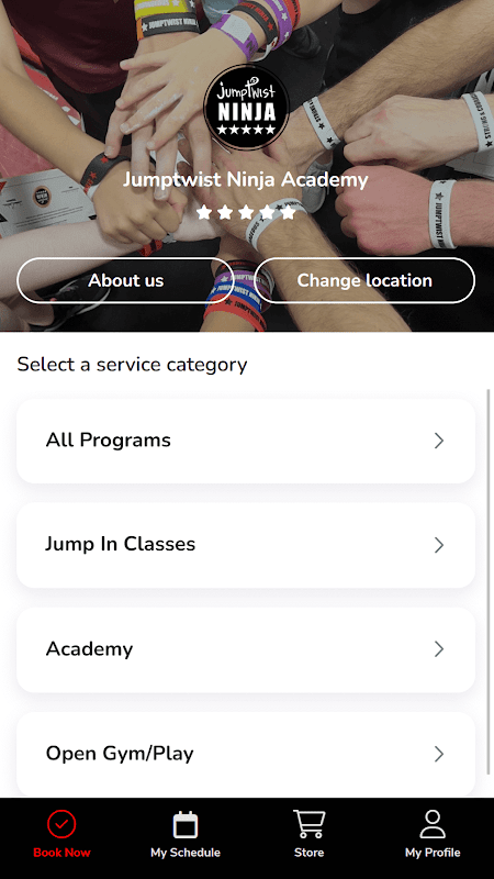 Baixe este aplicativo para ver horários e sessões de livros na Jumptwist Ninja Academy!