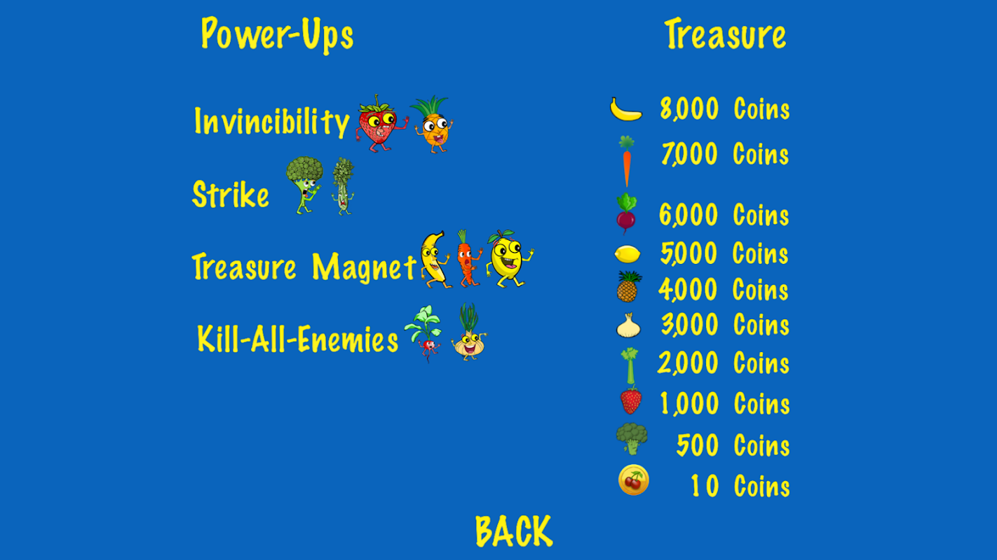 O herói carrinho de compras salta ao redor em busca de frutas, legumes, e tesouro.