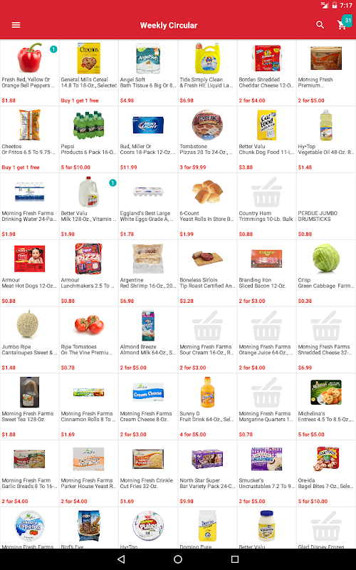 Use your past orders to quickly select and order your groceries, leveraging your favorites, order history and recommended items. Just browse the weekly ad or the entire store, select your items and order for pickup.