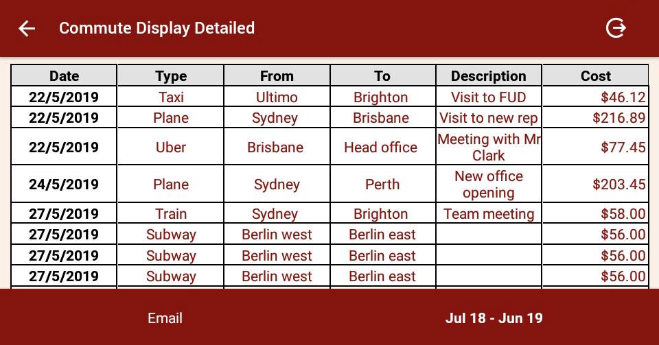 Uma variedade de relatórios de viagem pode ser gerada, visualizada e baixada de acordo com o intervalo de datas, a placa de licença, o inversor ou o tipo de custo. Todos os relatórios estão disponíveis como pré-visualização para tela, salvar em arquivo, e-mail ou uma exportação de dados. A opção de enviar relatórios diretamente para um consultor fiscal ou qualquer outro terceiro também está disponível.