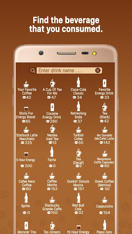Mantenha o controle do nível de cafeína em bebidas com o contador de cafeína!