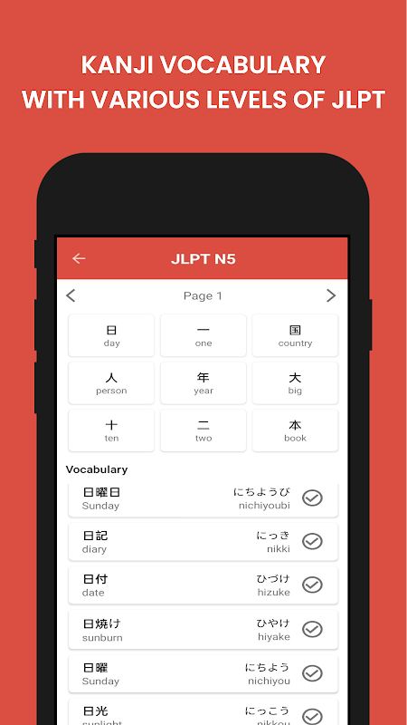 Kanjikita é um aplicativo desenvolvido especificamente para ajudá-lo a aprender e memorizar kanjis japoneses. O aplicativo cobre milhares de kanji agrupados por níveis JLPT (Teste de Proficiência em Língua Japonesa), de N5 a N1, tornando-o adequado para alunos de todos os níveis.