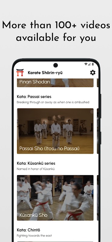 Este aplicativo fornecerá a você conteúdo selecionado sobre diferentes Katas. Você poderá assistir a vídeos onde um sensei executa um kata e alguns outros onde ele está ensinando ou corrigindo seus alunos.