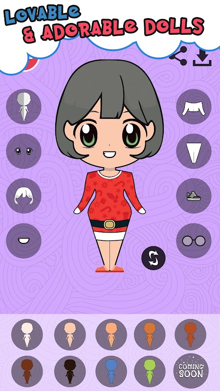From our impeccable wardrobe become best of anime-kawaii fashionistas. Dress up the anime girl with lots of fashionable items. And if you are fan of chibi and trying to make small and short avatars of animes and manga girls This App is also for you.