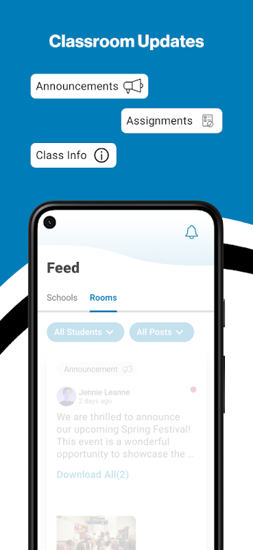 Selecione a organização do seu aluno no aplicativo e nunca perca uma mensagem.