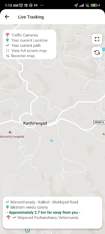 Um aplicativo para rastrear câmeras de trânsito e para lembrar infrações de trânsito em Kerala