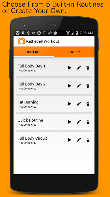 - Choose from sample kettlebell workouts and start working out with one click