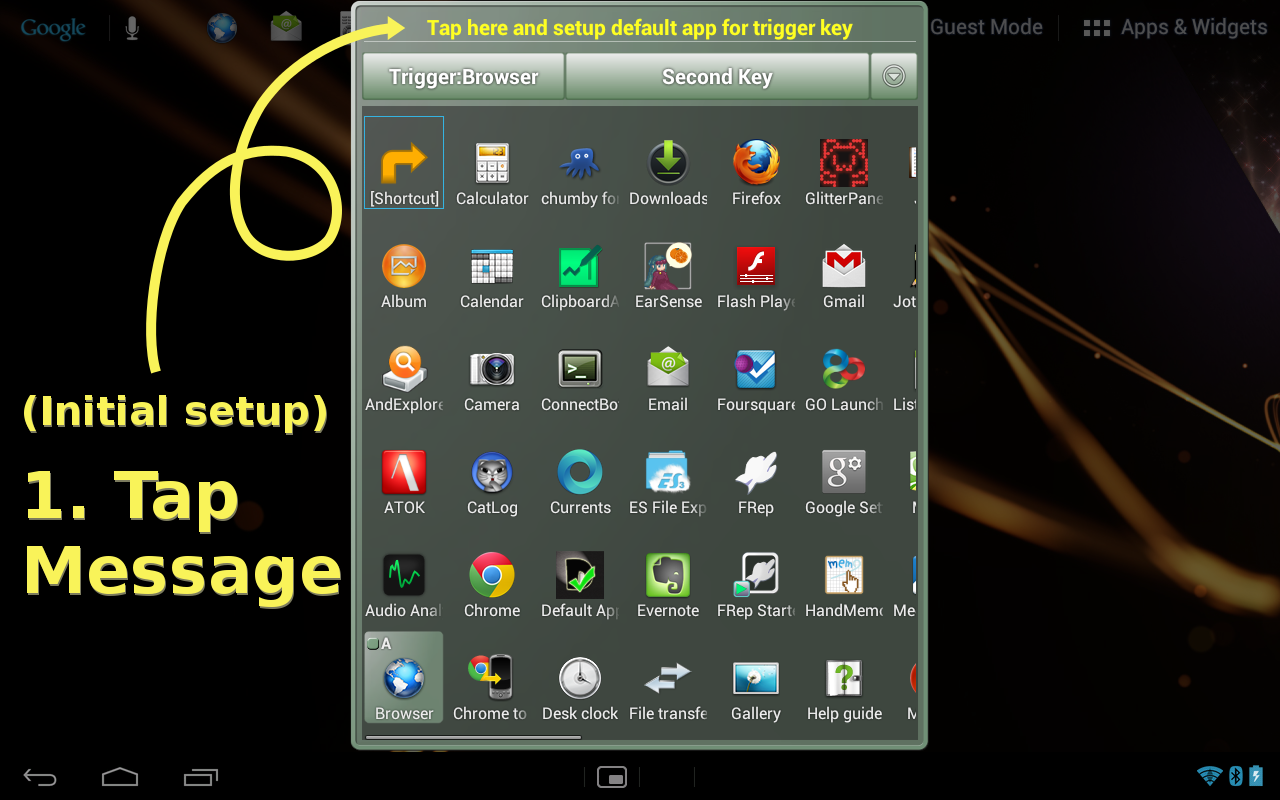 4. Na caixa de diálogo moldura verde, carregue em Enter ou toque em "Toque aqui e aplicativo padrão de configuração para a chave gatilho" no topo.