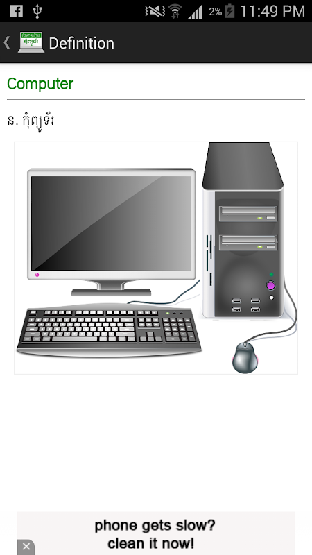 O primeiro dicionário de computador em Khmer com explicação detalhada e imagem.
