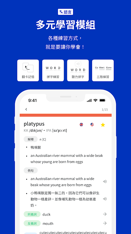 Vários conjuntos de explicações, vários conjuntos de frases de exemplo, sinônimos, links de antônimos, prefixos de raiz, notas pessoais e imagens. Todas as necessidades são atendidas de uma só vez e você tem seus próprios pontos de memória para estudar!