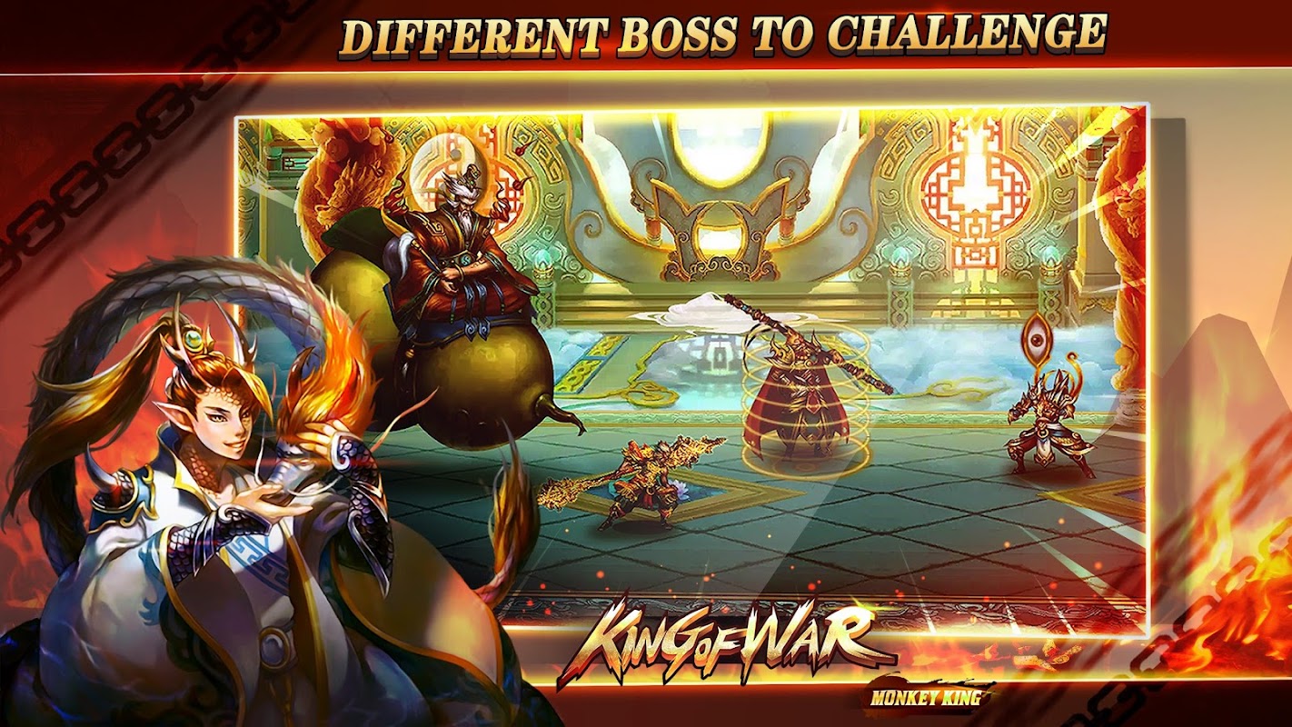 King of war-Monkey king is a wonderful ARPG game, heavy combat fighting, dozens of skills to choose, the other contains the legend, epic, dark gold equipment, up to thousands of pieces of the best equipment, exciting BOSS battle, plenty of fighting scenes, a huge and wonderful story of the myth world !
