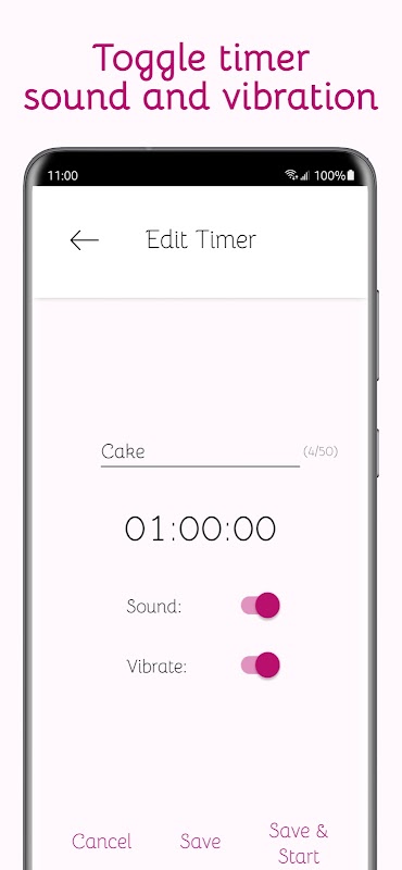 Acompanhe seus cronômetros dando a cada um deles um título. Você pode personalizar se os timers devem soar o alarme e se devem vibrar, para cada timer individualmente.