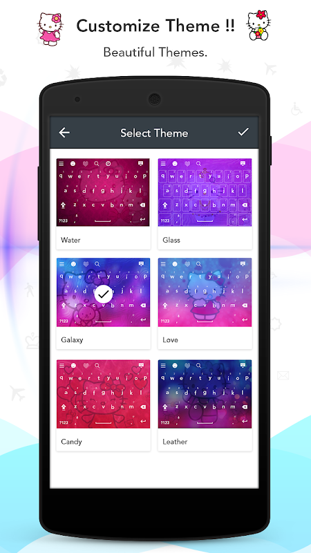 - Tema do teclado Kitty com subtemas relacionados ao fundo Kitty.