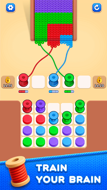 Combine e elimine peças de fios por cor à medida que elas fluem pelo tabuleiro. Cada movimento é suave, fluido e recompensador, como tricotar de verdade.
