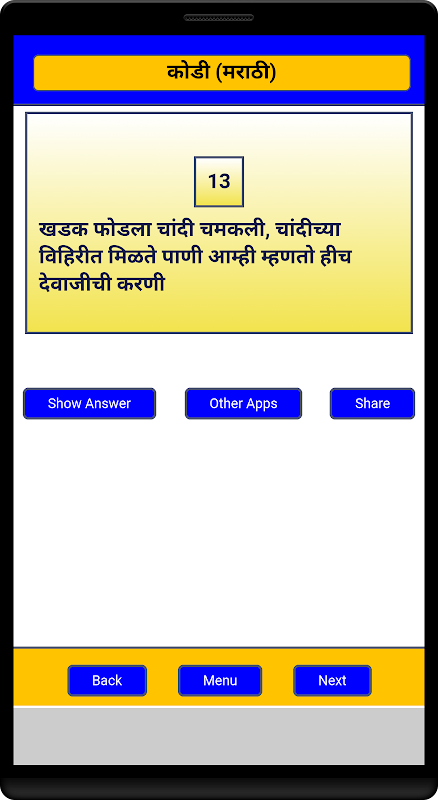 Apresentando um aplicativo exclusivo para quebra-cabeças em Marathi. Aproveite a coleção de kodi com sua família e amigos e compartilhe-os como quiser.