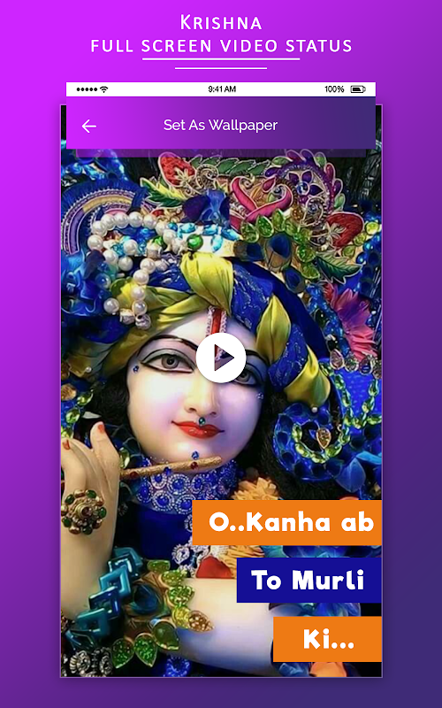 Krishna Screen Video Status with share full screen video status and dp on social websites with just one click. this have all best option to use this application like....