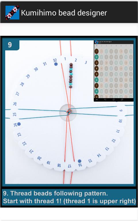 - You can highlight a particular thread in your pattern by touching the screen, and this makes it easy to thread the beads in the correct order. (only in the paid version)